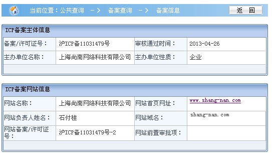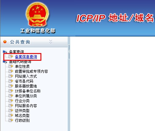 在打开的页面中,左侧有一列导航链接,点击最上面的“备案信息查询”,如下图