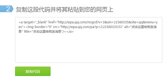 第四步:复制代码,粘贴到需要QQ客服的页面,如下图。